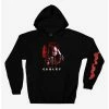 Going out to play with Chucky? Make sure you stay bundled up in this killer hoodie! Featuring your favorite slasher in a classic ’80s design, with light beams in the background.
