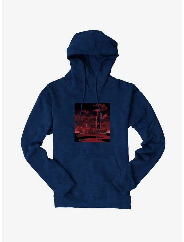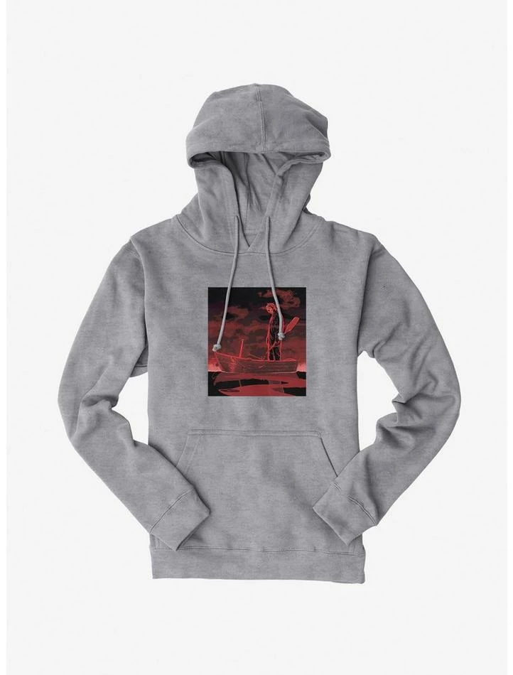 Thanks, but we can row our own boat! This pullover hoodie has an ominous graphic featuring Jason Voorhees holding a paddle.