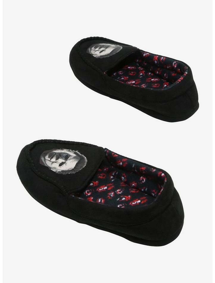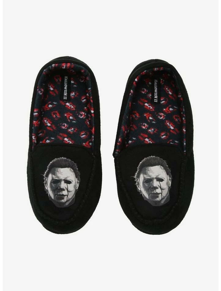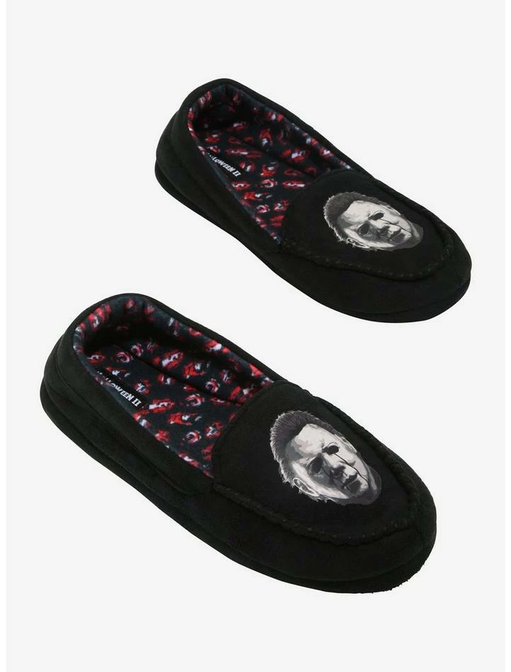 Tired from slaying all day? Give your feet a rest in these Halloween slippers, featuring Michael Myers on the top.