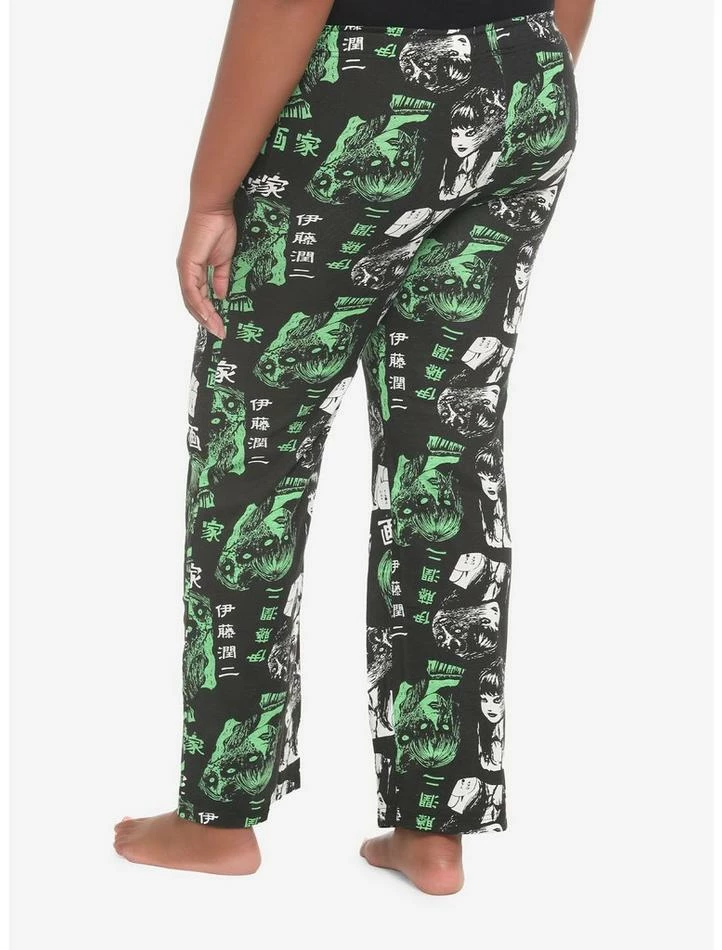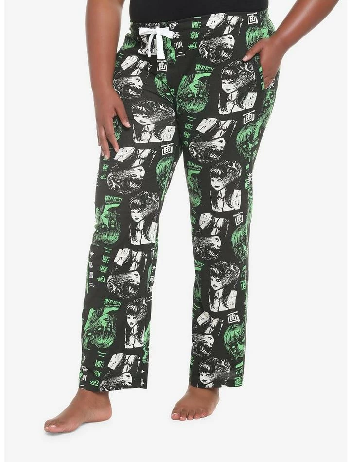 Spending the afternoon reading your favorite manga? Kick back and relax in these Tomie pajama pants! Featuring an allover print of normal and demonic Tomie faces in black and white and green.