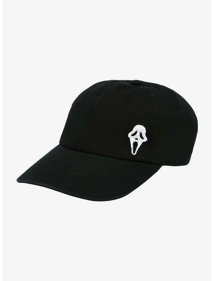 No cap, this Ghost Face cap will have you screaming with joy! Add a killer hat to your outfits with this Scream dad cap, featuring an embroidered Ghost Face icon and adjustable backing.
