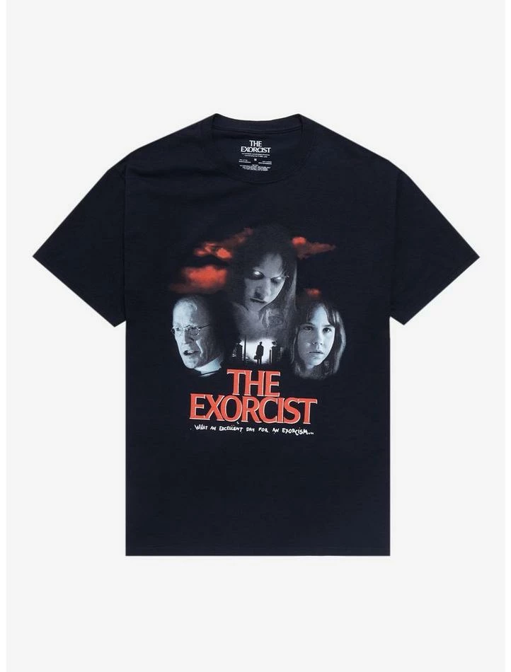 Lookin’ to add more horror tees to your collection? We gotchu! Rep a horror classic with this The Exorcist tee, featuring a collage of all your faves and a red sky looming above.
