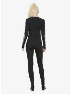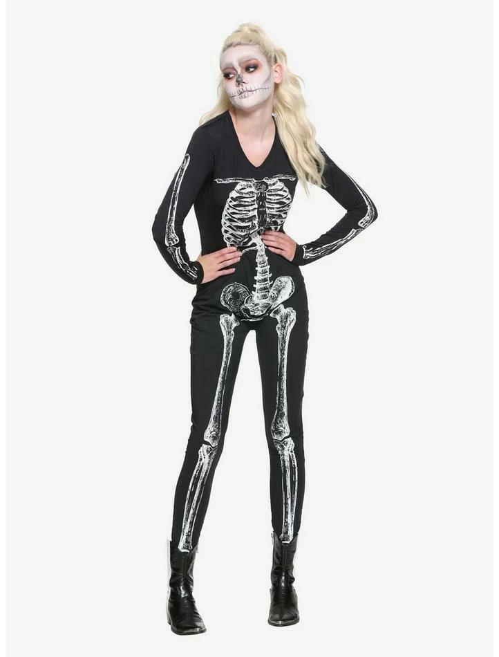 Be bad to the bone this Halloween! This black catsuit features a skeleton design and back zipper closure. Includes catsuit only.